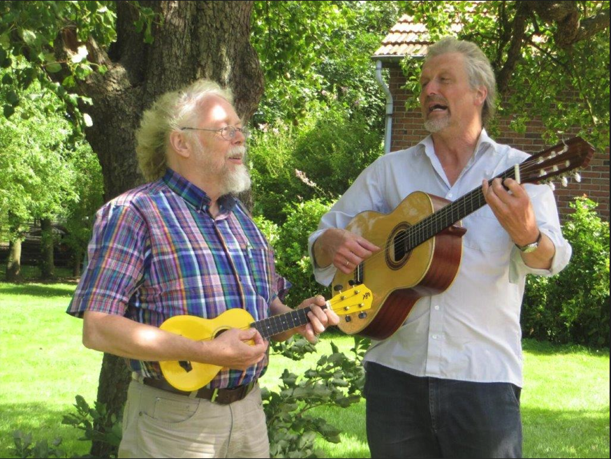 Konrad Lohrmann, Sozialarbeiter und Liedersänger und Hartwig Ventker, Musiker und Instrumentallehrer lassen Lieder und Texte Ulrich Roskis bei einem humorigen Abend lebendig werden.